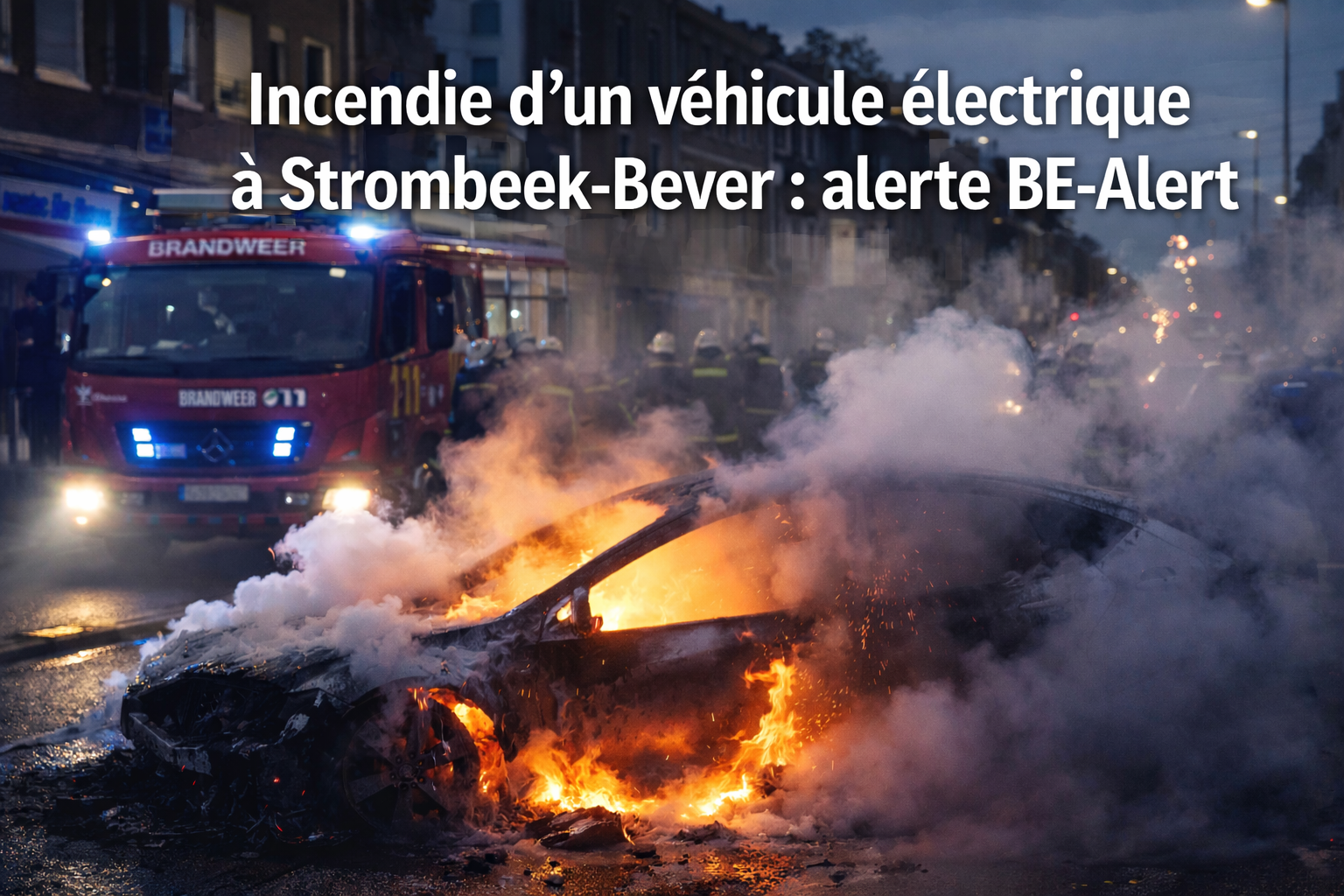 Une alerte de sécurité a été déclenchée ce soir à Strombeek-Bever après l’incendie d’un véhicule électrique à hauteur de l’Antwerpselaan. Les autorités ont rapidement activé le système d’alerte BE-Alert afin d’informer les habitants de la présence de fumées potentiellement toxiques dans la zone.